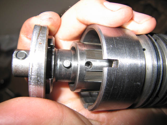 Its important to line up the little nub on the input shaft and the hole in the valve body as you slide them together. The whole assembly is tightly machined, so if you are able to somehow superman them together without lining them up, you may need another assembly. Else, it will just stick and the flat end of the input shaft (shown on left) will not fit into the valve body ( long fat cylinder on right with the 3 grooves)