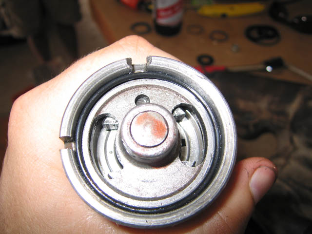 The output shaft top should fit snugly inside the valve body. The o-ring should fit as shown. The diameter of the o-ring may seem a *hair* too large, but just use a little petroleum jelly to hold it down.